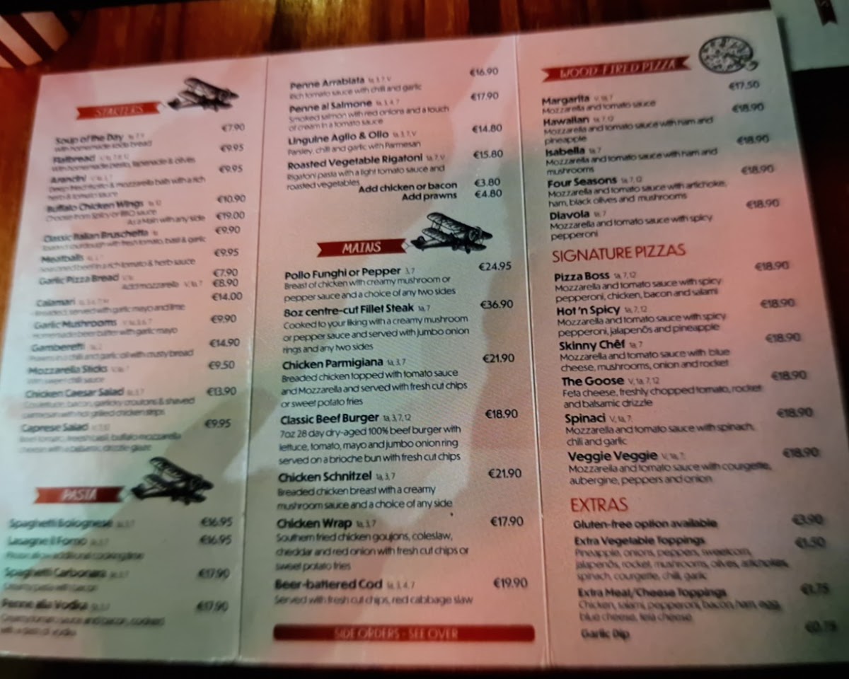 The menu highlights include hearty pizzas like the Pizza Boss and Isabel Pizza, alongside pasta staples such as Spaghetti Carbonara and Penne Arrabiata. For those seeking lighter or shareable bites, options like Chicken Wings and Meatballs in Tomato Sauce fit perfectly. The drink offerings, ranging from comforting Americano coffee and Cappuccino to a creatively crafted Bubblegum Martini or a refreshing Bulmers Cider, complement the food and the relaxed, friendly setting.