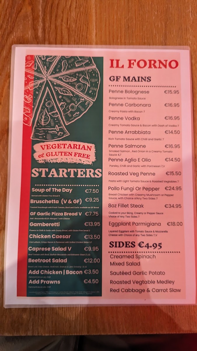 IL Forno offers a menu that balances comforting Italian classics with casual, woodfired pizza favorites. The selection feels approachable and satisfying, ideal for anything from relaxed weekday dinners to weekend gatherings with friends or family. Whether you're stopping by for a cozy meal after exploring Drogheda or settling in for a laid-back evening, the dishes and drinks reflect a warm, inviting atmosphere.